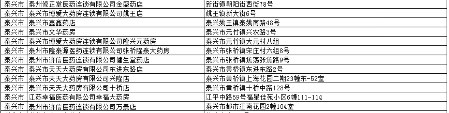 泰州兴化市异地联网定点零售药店地址一览表