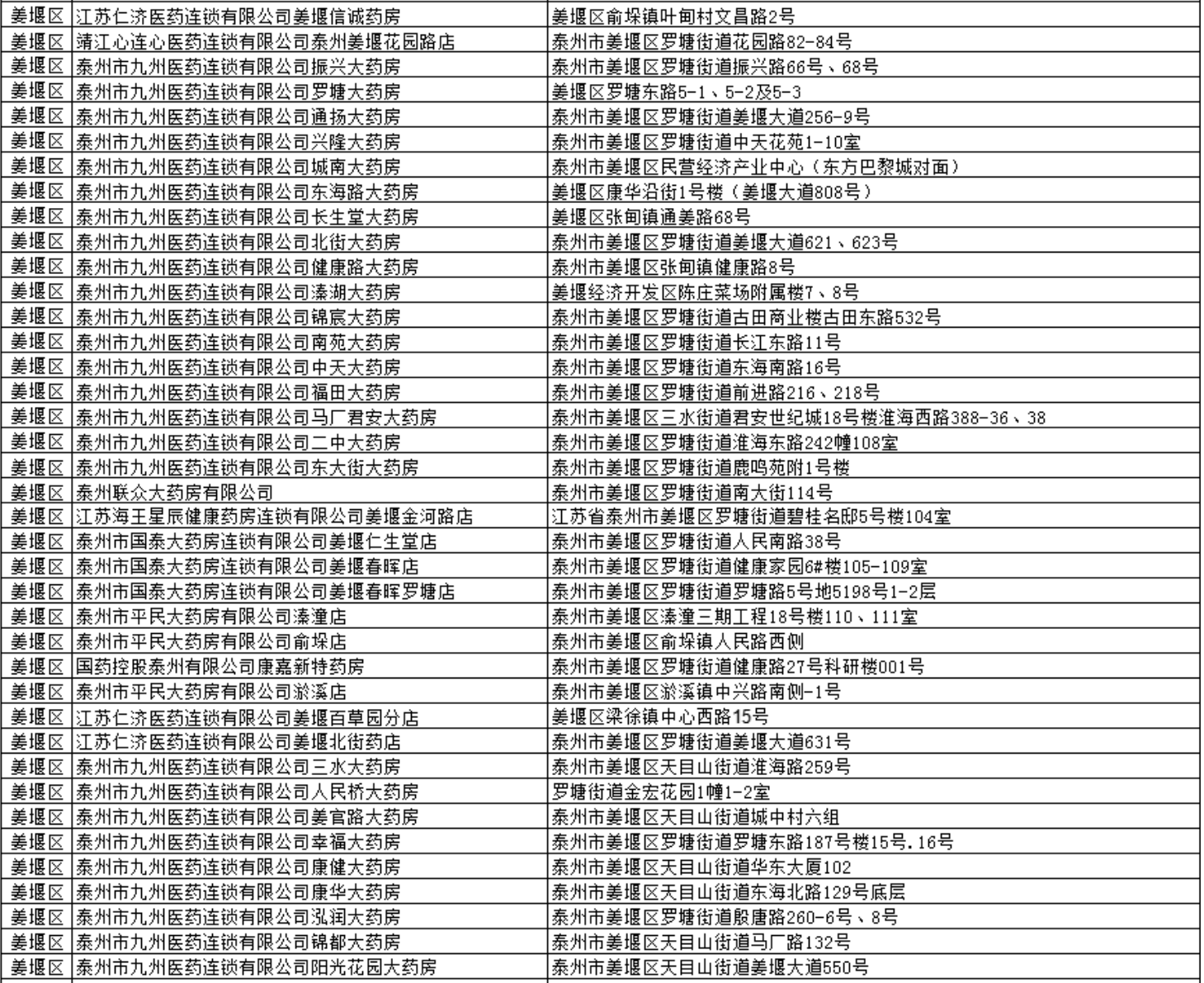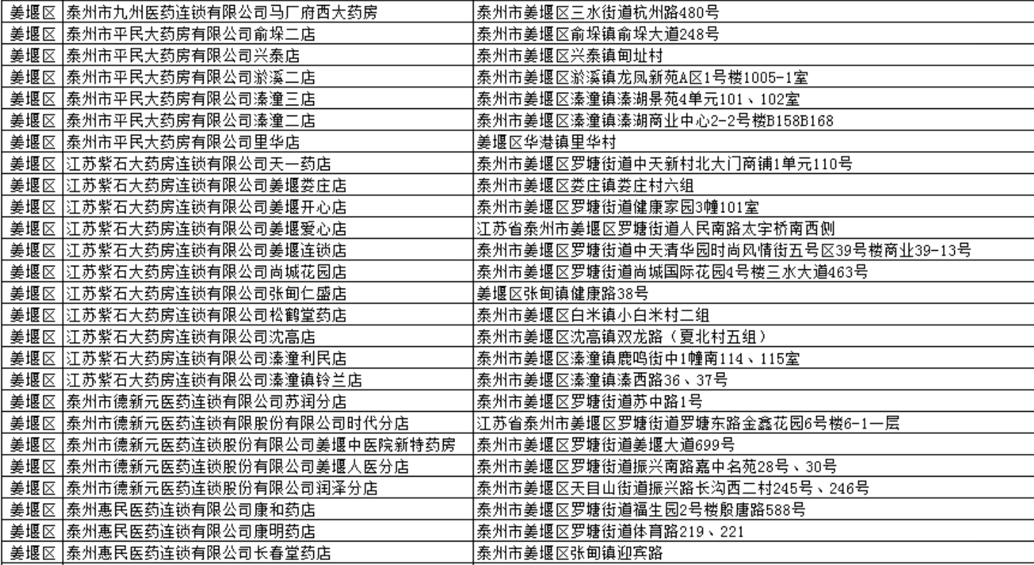 目前,姜堰区可以实现异地就医联网结算的定点药店地址如下: