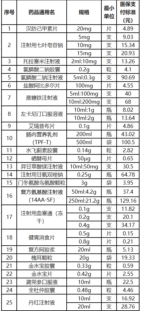 泰州25个试点药品统一医保支付标准