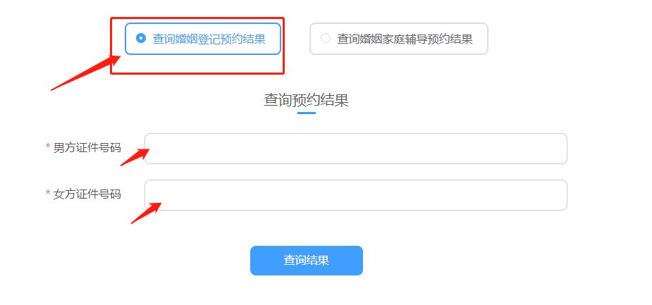 第一步:点击“查询婚姻登记预约结果”