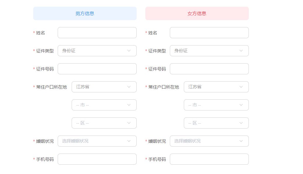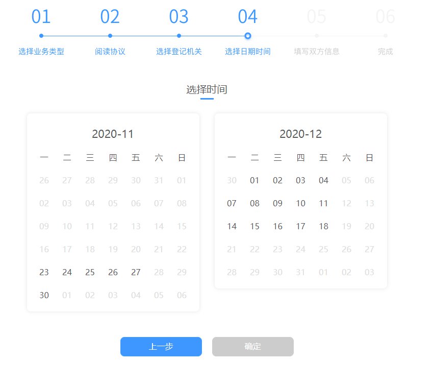 第四步:选择预约日期和时间,点击确定,填写男女双方信息,上传电子版证件,即可完成预约