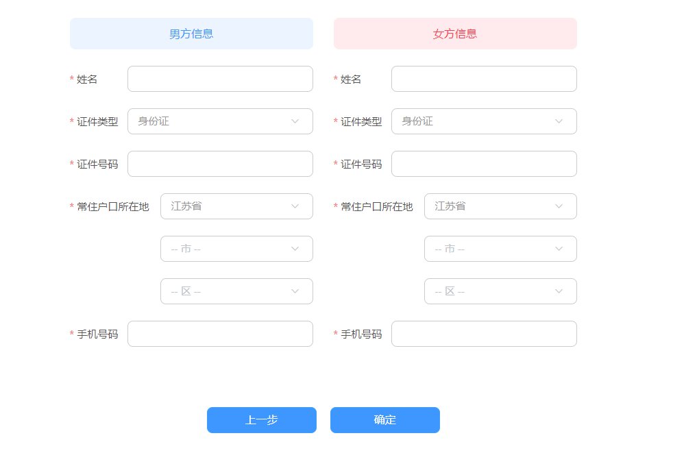 第四步:选择预约时间,填写男女双方信息,点击确定即可完成预约