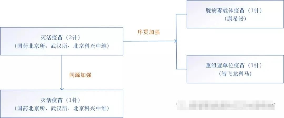 序贯加强免疫策略实施后,完成全程接种上述三种灭活疫苗的目标人群,还可以选择智飞龙科马的重组蛋白疫苗或康希诺的腺病毒载体疫苗进行序贯加强免疫