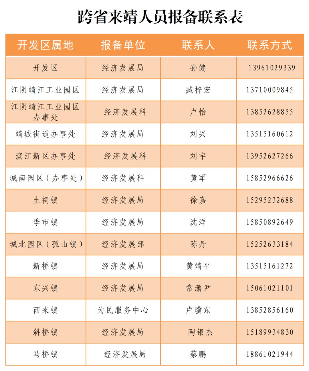 三、跨省返工人员在抵靖后,请于第一时间(最晚不得迟于6小时)向居住地村(社区)报备,并提供有效核酸检测阴性证明,同时领取村(社区)盖章的核酸检测免费服务券,在我市任一核酸检测服务点采样检测(见附件1)。大型企业、单位跨省用工在100人以上的,可与市卫生健康委联系对接,统一组织上门核酸采样服务。四、摸排登记报备。各用工企业、单位要对跨省来靖人员进行提前摸排、登记,并在人员抵靖后,核查其行程卡等信息,第一时间(最晚不得迟于6小时)向行业主管部门和属地报备(属地联系方式见附件2)。