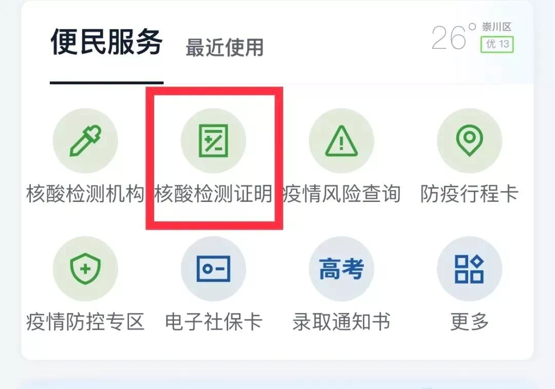 扫码进入“国务院客户端”首页,点击“核酸检测证明”:检测报告可查询时间为出报告后1-2天。