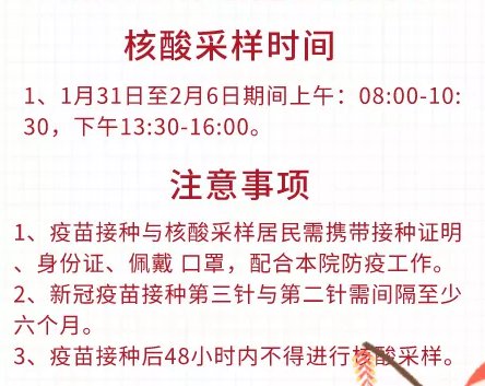 姜堰区洪林卫生院2022年春节期间核酸检测采样时间