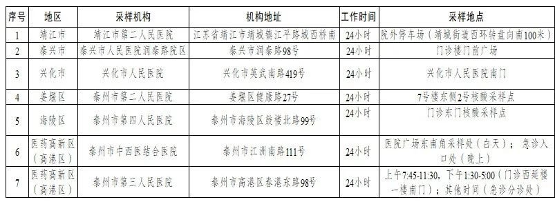 泰州市中医院2022年春节核酸采样、检测正常开展。核酸采样时间安排: