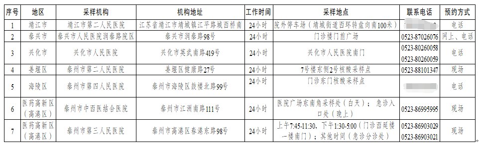 2022年春节假期泰州全市核酸检测点汇总