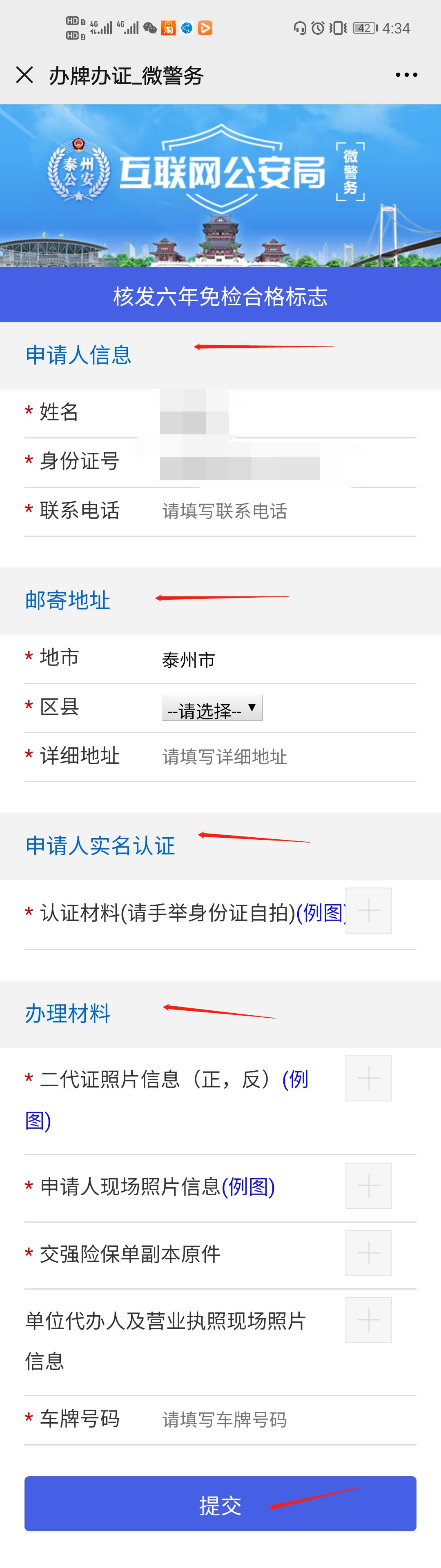 第三步:进入申请页面后,依次填写申请人信息—邮寄地址—申请人实名认证—办理材料,全部完成后,点击提交即可完成预约。
