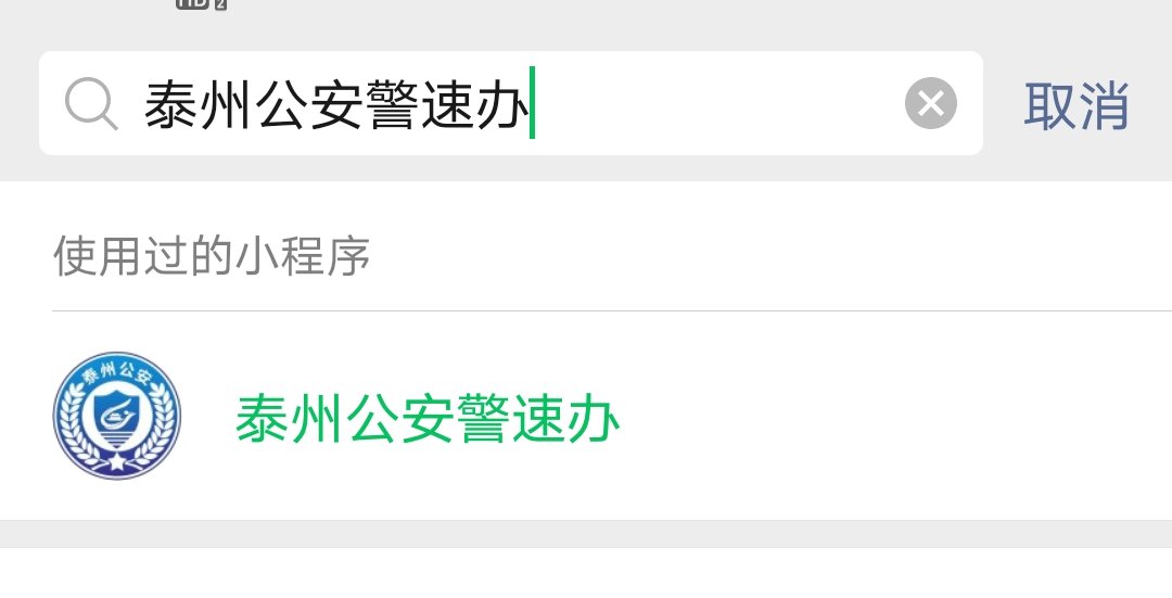 第一步:微信搜索“泰州公安警速办”小程序,点击进入