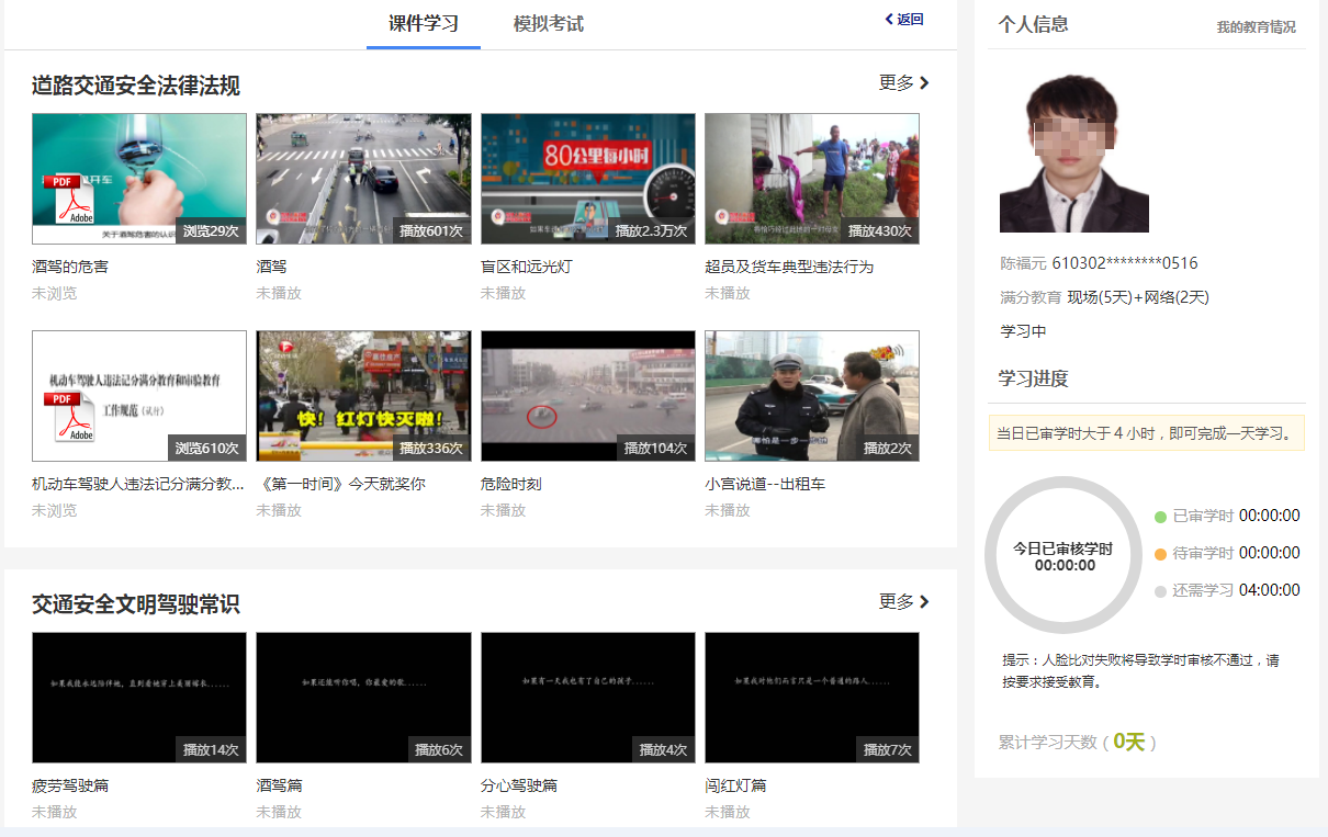 (5)您当天累积学满3小时后,由交管部门负责审核,审核后若您的已审核学习时间不满足3小时的,当天学习时间作废。