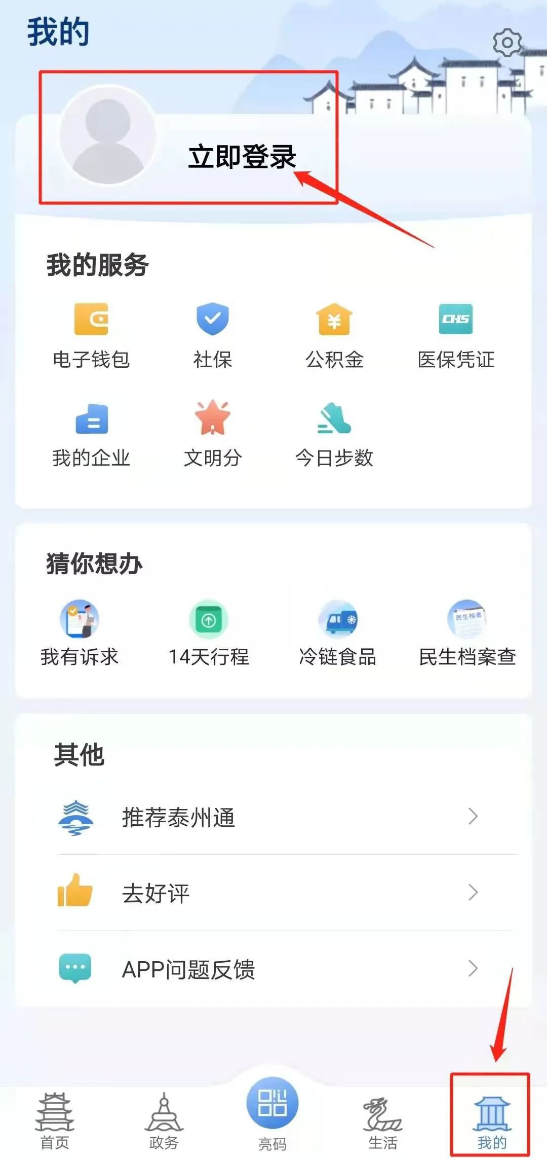 1.下载、注册并登录“泰州通”APP。