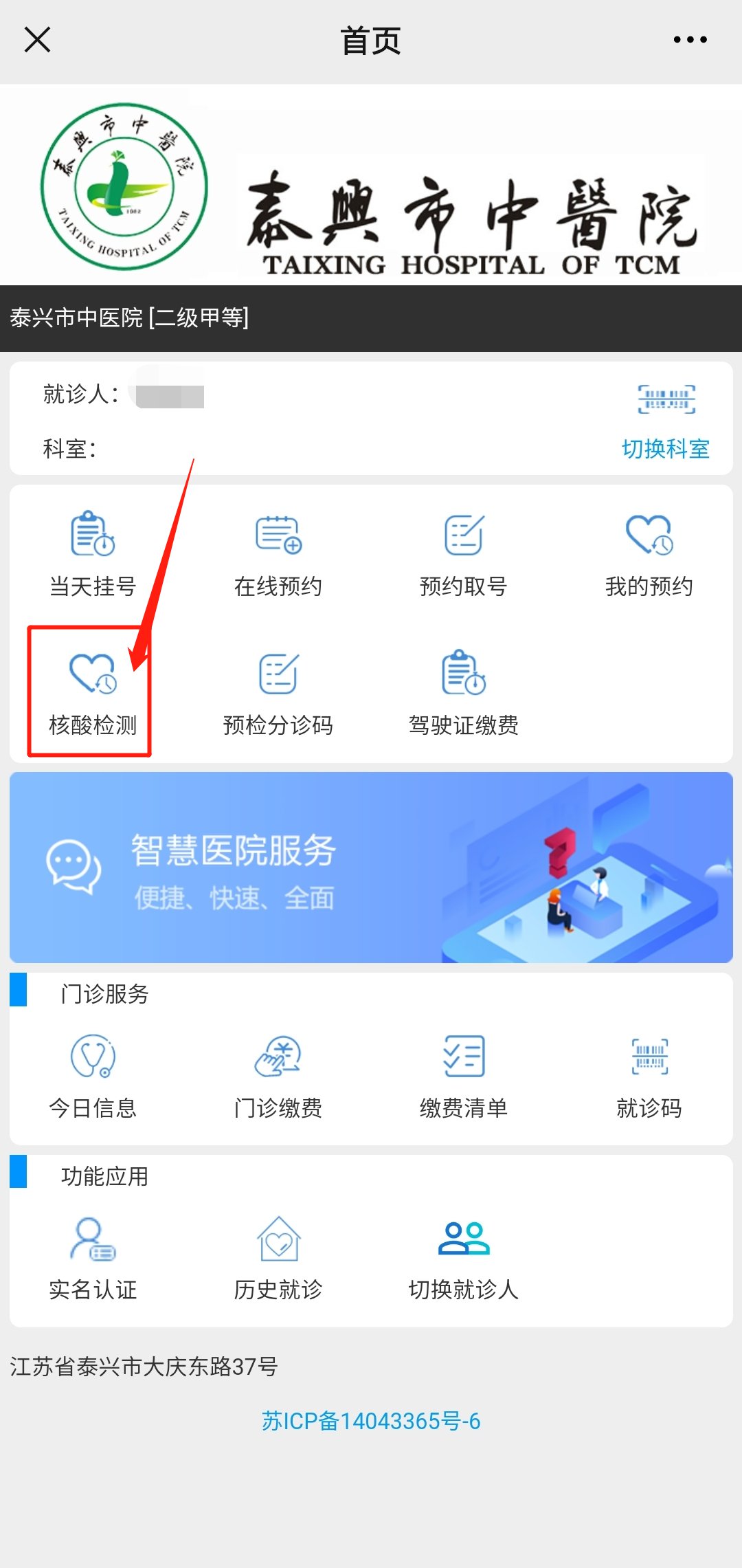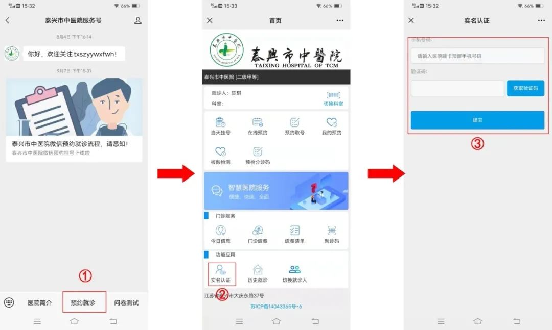 微信搜索“泰兴市中医院服务号”并关注(点击进入)