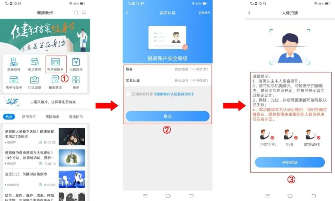 2.实名注册:邀请码填写JK0030,注册成功后登录,点击主页上的“电子健康卡”,输入姓名、身份证号,人脸认证成功。