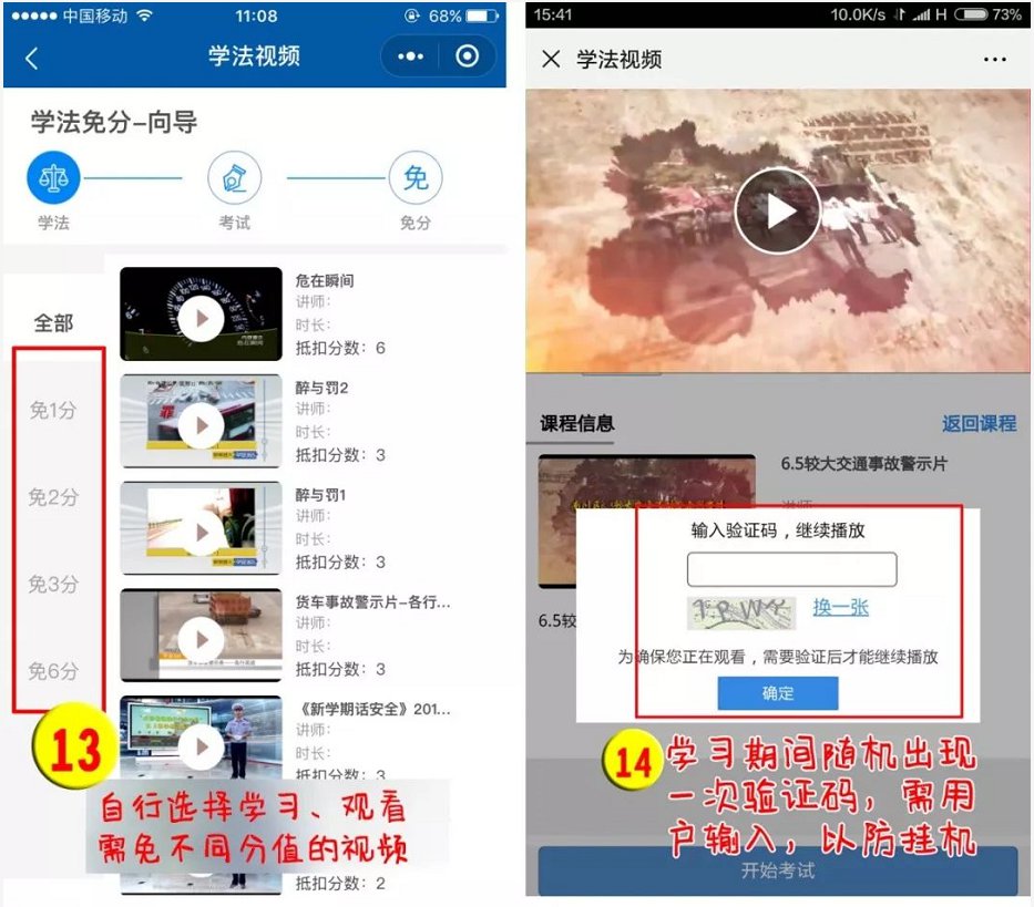 驾驶人在使用该功能学习时,可自主选择观看减免不同分值的视频,视频内容范围包含常见交通违法行为危害、交通安全知识宣讲、交警形象展示等等。