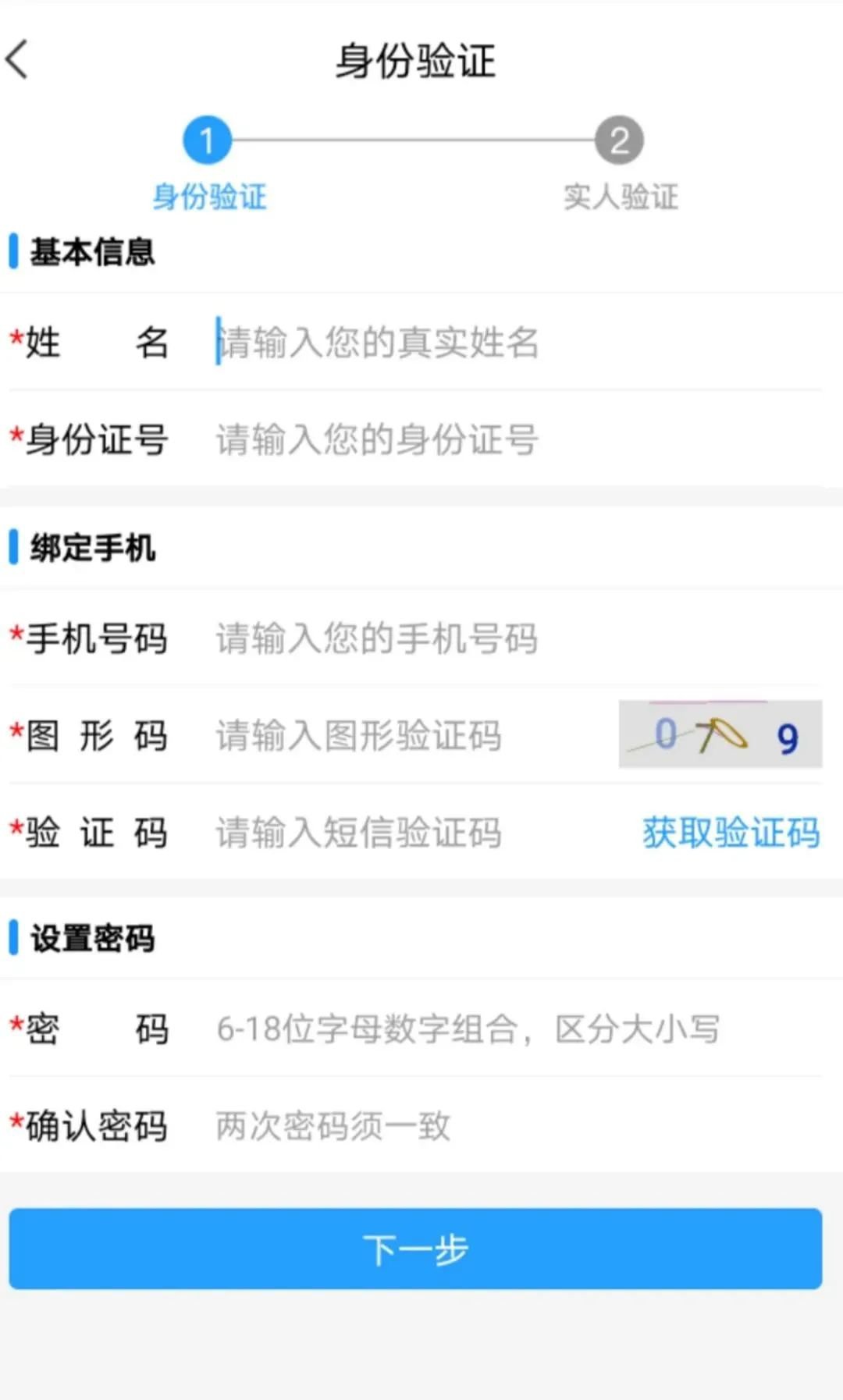 第一步:下载“苏证通”APP,输入身份证、手机号,进行人脸识别,注册登录