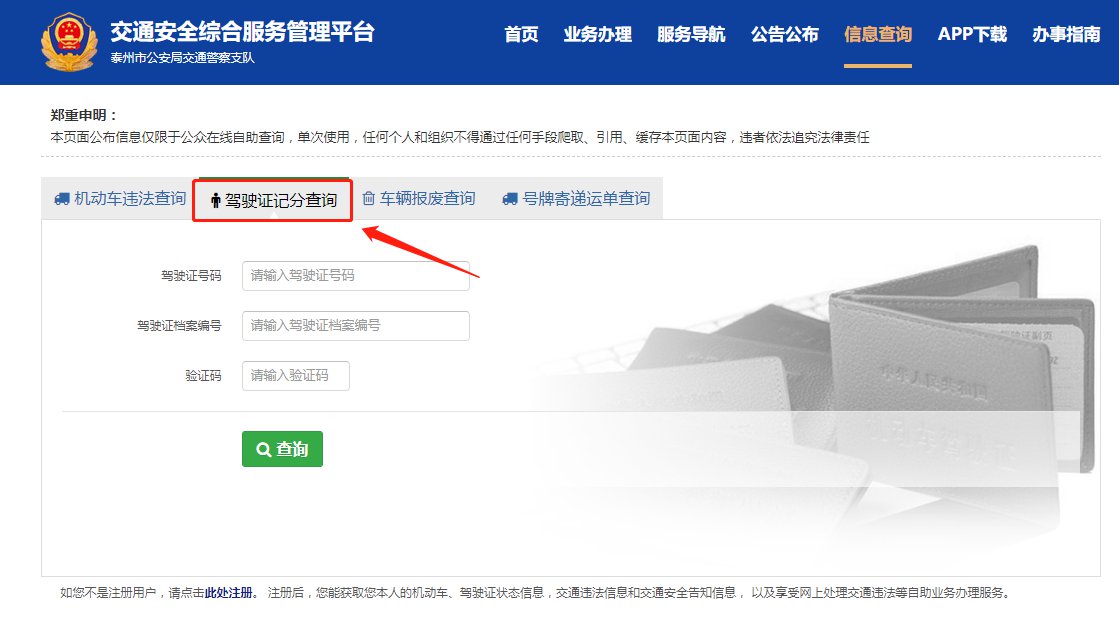 泰州怎么查驾驶证扣了多少分(泰州驾照扣分查询系统)