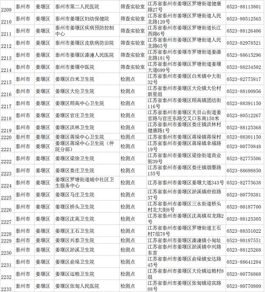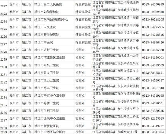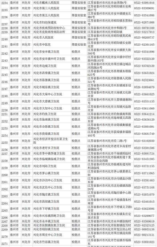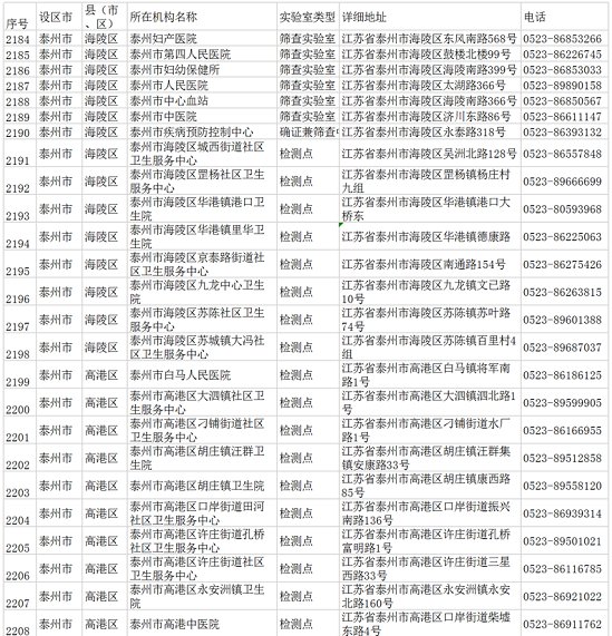 泰州市147家艾滋病检测机构名单(截止至2021年12月19日)