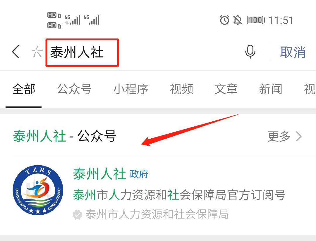 第一步:微信搜索并关注“泰州人社”公众号,进入公众号,在下方菜单栏找到“人社服务”—“社保卡网点地图”入口。