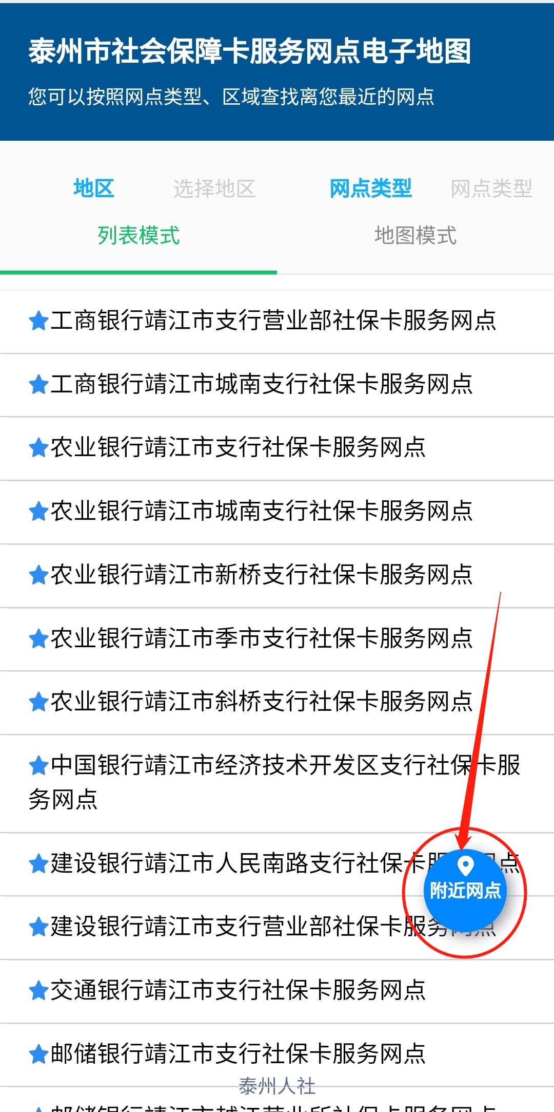 泰州市社保卡服务网点电子地图功能使用说明+入口