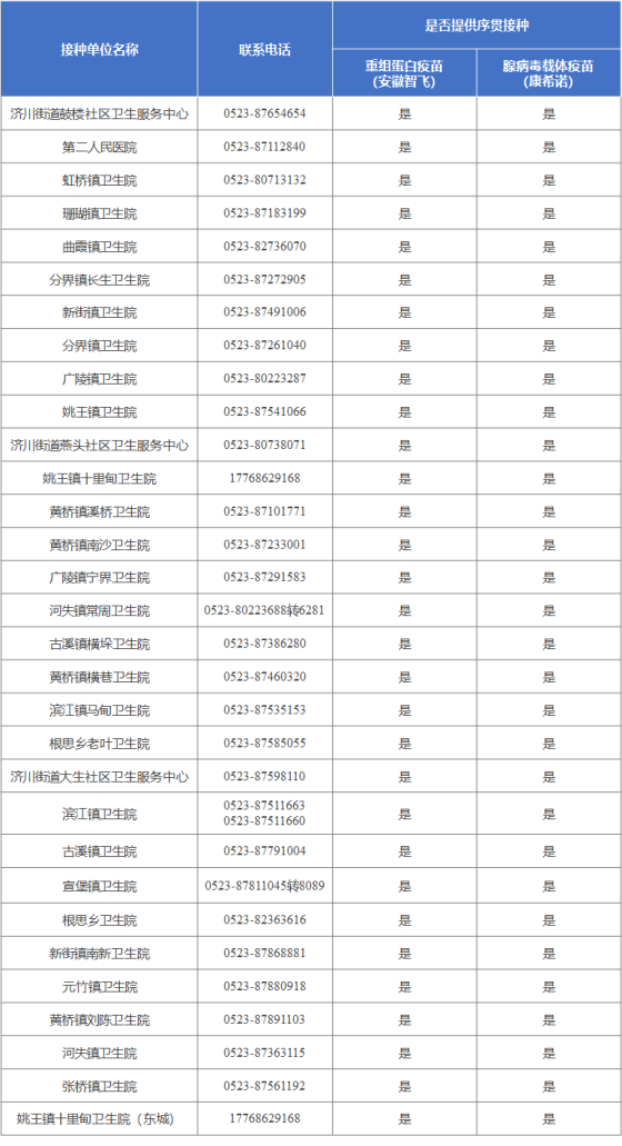 泰兴市新冠疫苗加强针接种点地址汇总表: