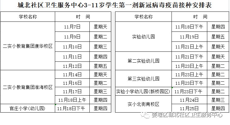 姜堰区城北社区卫生服务中心小孩新冠疫苗接种时间安排(第一针)