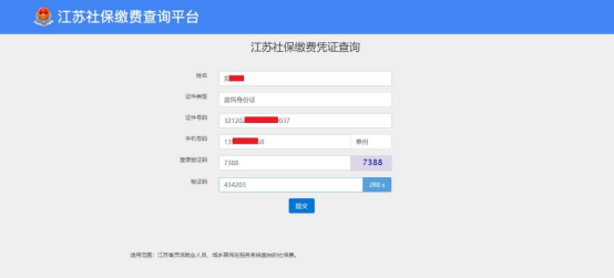 页面跳转至“江苏社保缴费凭证查询”。