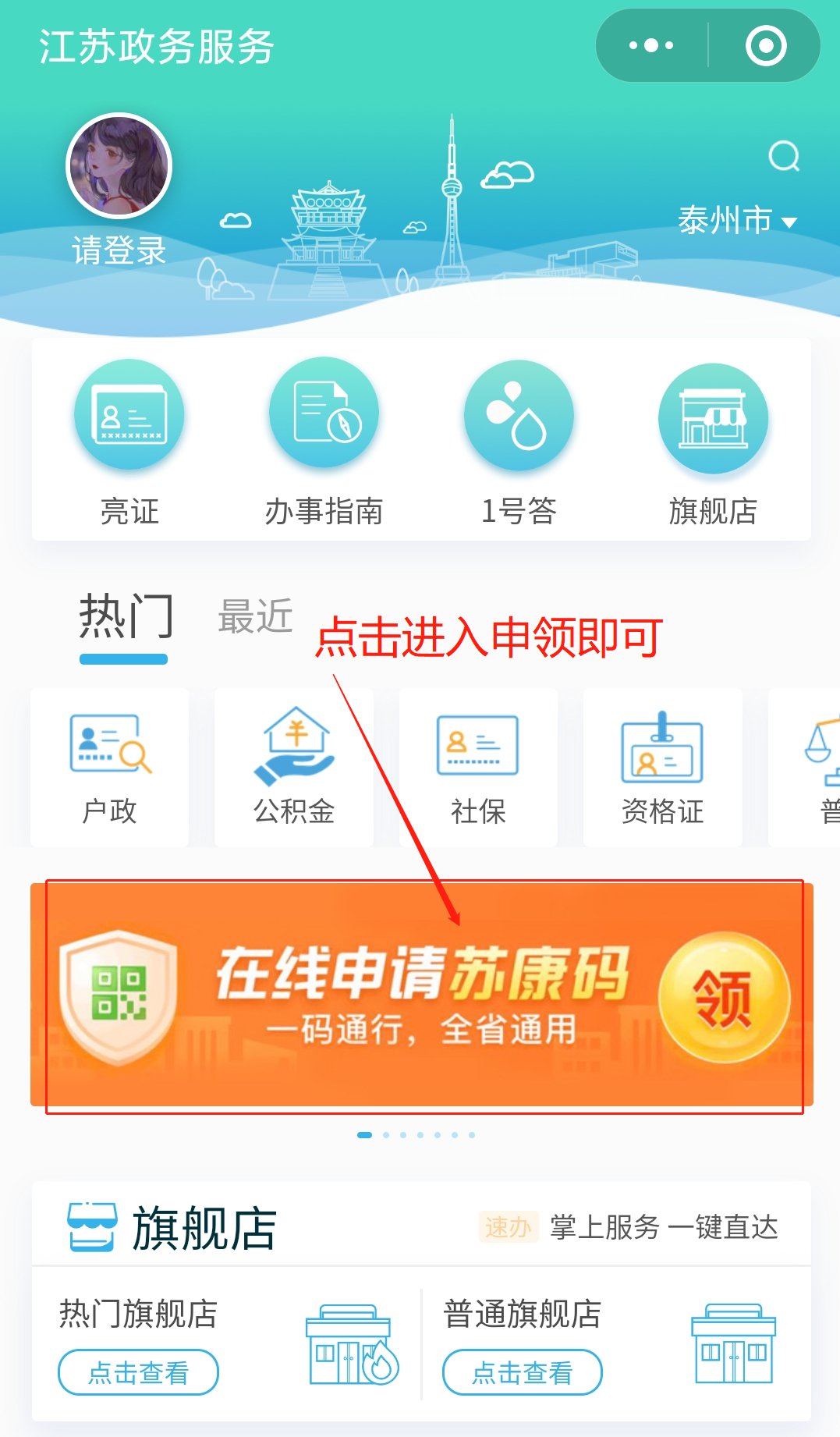 2、在首页点击“在线申请苏康码”;