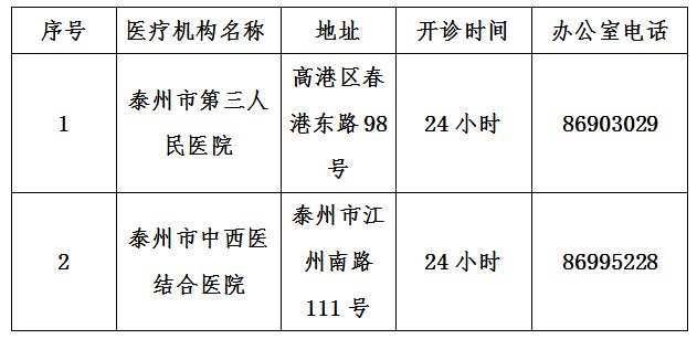 近期,多地报告新增本土确诊病例及无症状感染者,为科学精准防控疫情,有效控制和降低疫情传播风险,更好地守护群众健康,现将泰州市医药高新区(高港区)开设发热门诊的医疗机构名单予以更新并公布。