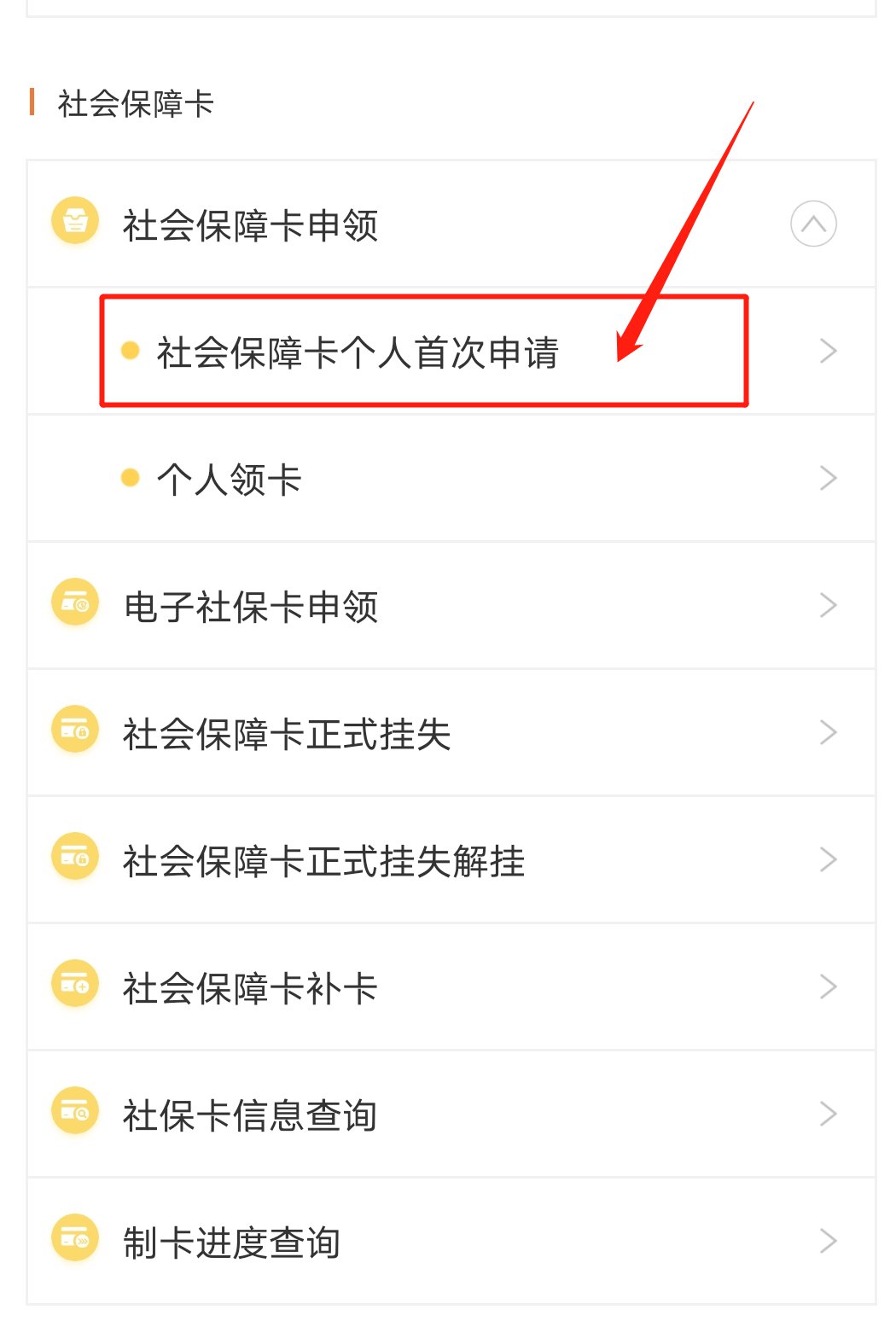4.选择“社会保障卡”专栏,点击“社会保障卡个人首次申领”模块。