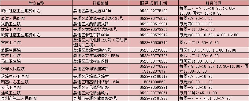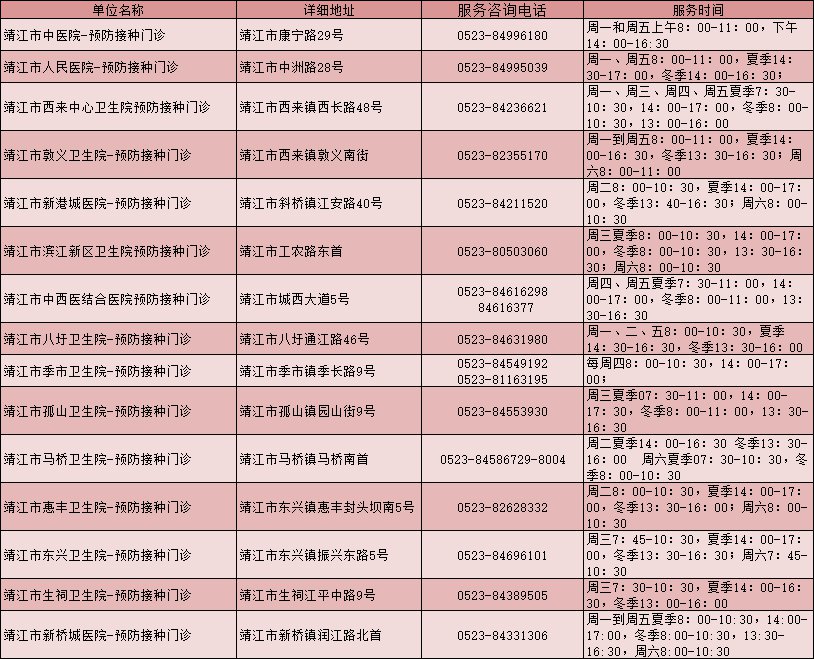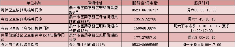 | 市(区)名称 | 接种点汇总(地址+电话+服务时间) |