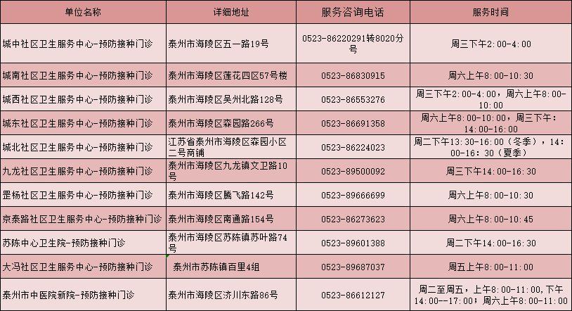 泰州市成人流感疫苗在哪里接种 泰州疫苗接种地点