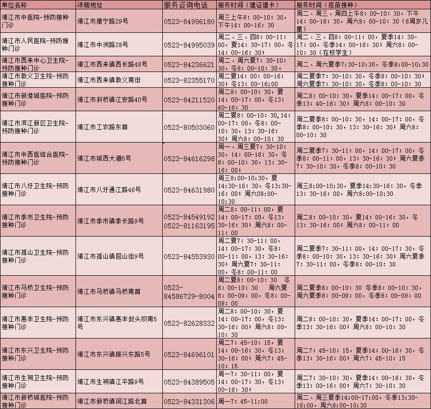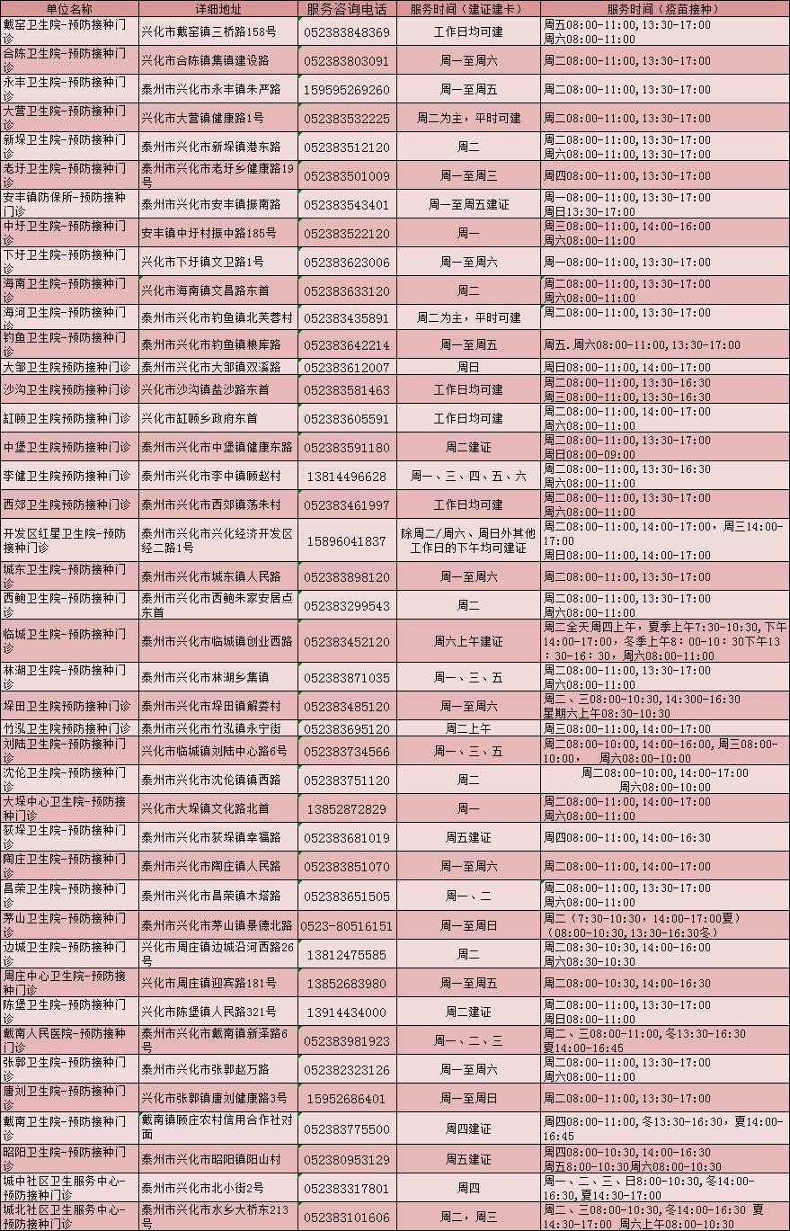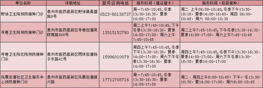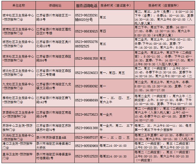 泰州儿童流感疫苗接种点一览表