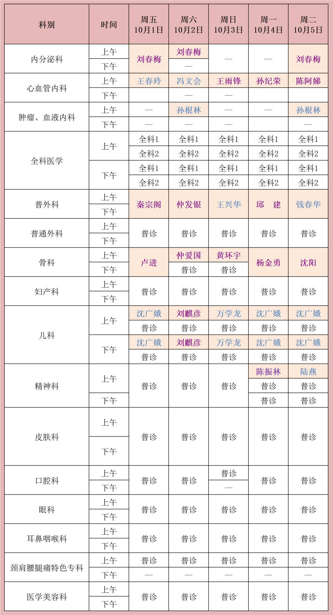 放假期间部分专家门诊、普通门诊开诊,体检中心暂停体检;东门核酸采集点正常上班。10月6日(星期三)恢复正常门诊。