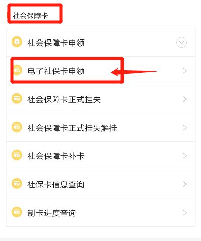 4.选择“社会保障卡”专栏,点击“电子社保卡申领”模块。