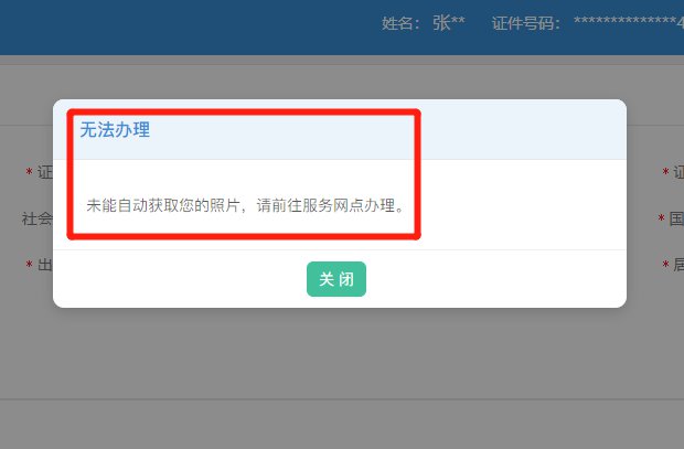 如系统未能自动获取到申请人基础信息和照片,申请人则需通过线下服务渠道办理。
