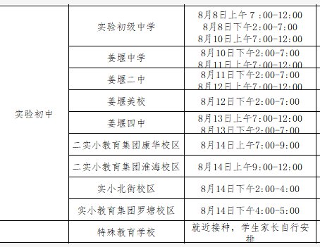 3.城区学校现居住农村的学生、农村学校现居住在城区或其他镇街的学生,可按照个人意愿,向现就读学校班主任申请,同意后选择到城区接种点或就近的镇街医疗机构接种。这些学生接种时间统一为8月14日下午2:00至7:00,其中城区接种地点为姜堰中专。