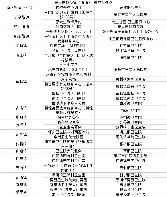 2021泰兴市核酸检测临时采样点在哪里(2021泰兴市核酸检测临时采样点在哪里检测)