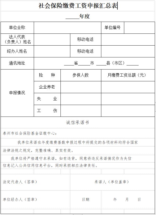 泰州社会保险缴费工资申报汇总表下载入口(2021)