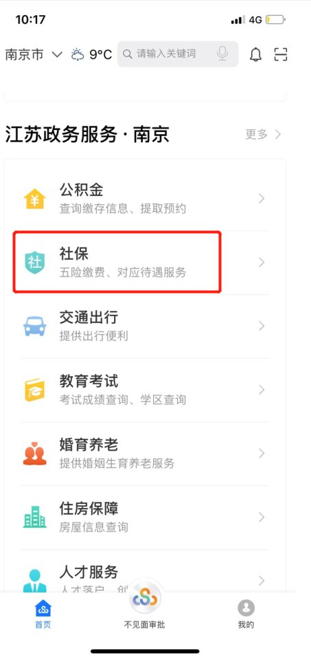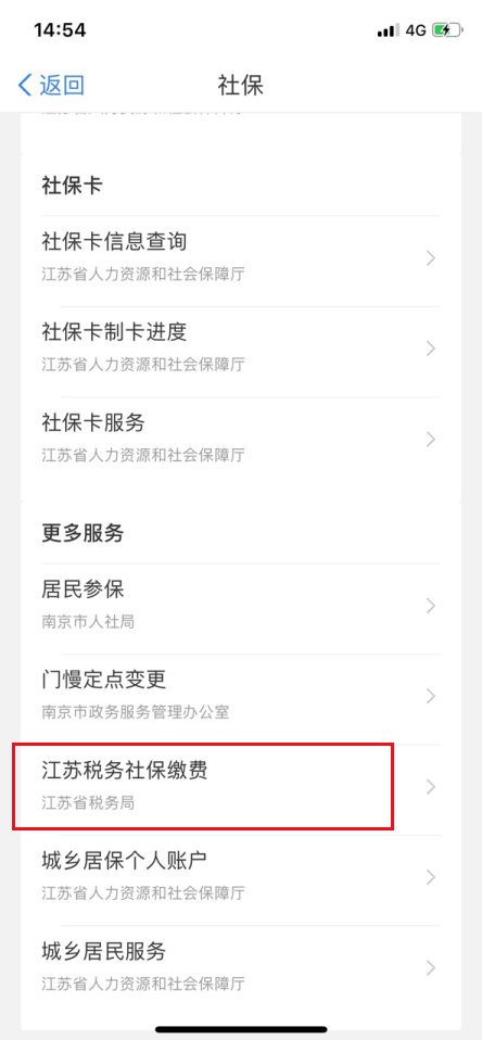 实名登录江苏政务服务APP,点击“社保”服务专栏-选择江苏税务社保缴费-点击进入应用↓