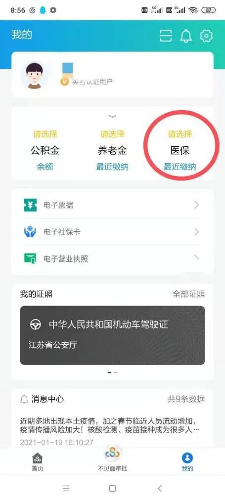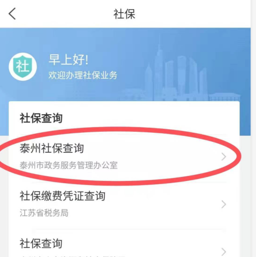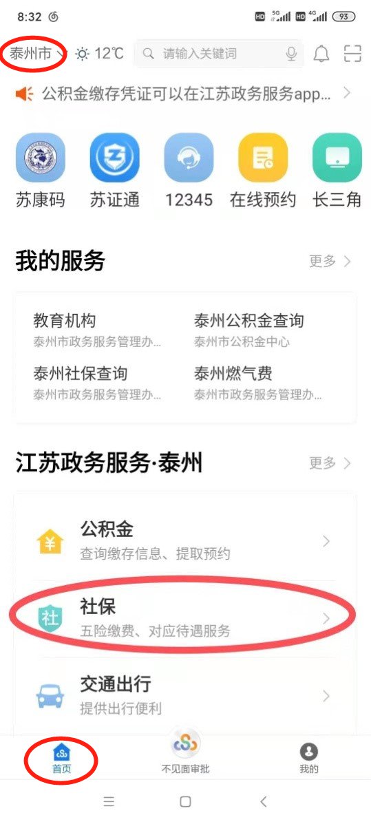 同样打开“江苏政务服务”APP,选择“首页>>统筹区改为泰州市>>社保>>泰州社保查询>>进入应用”便可查看账户余额。