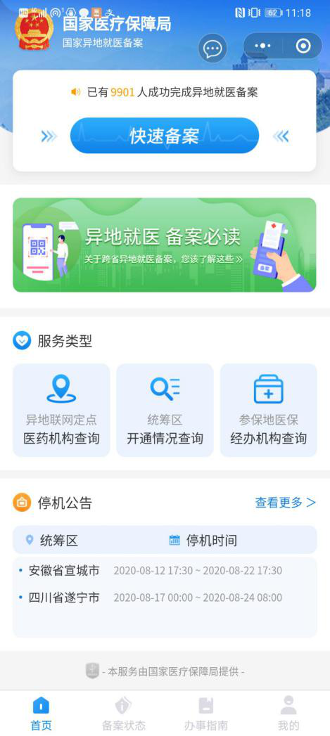 国家异地就医备案小程序: