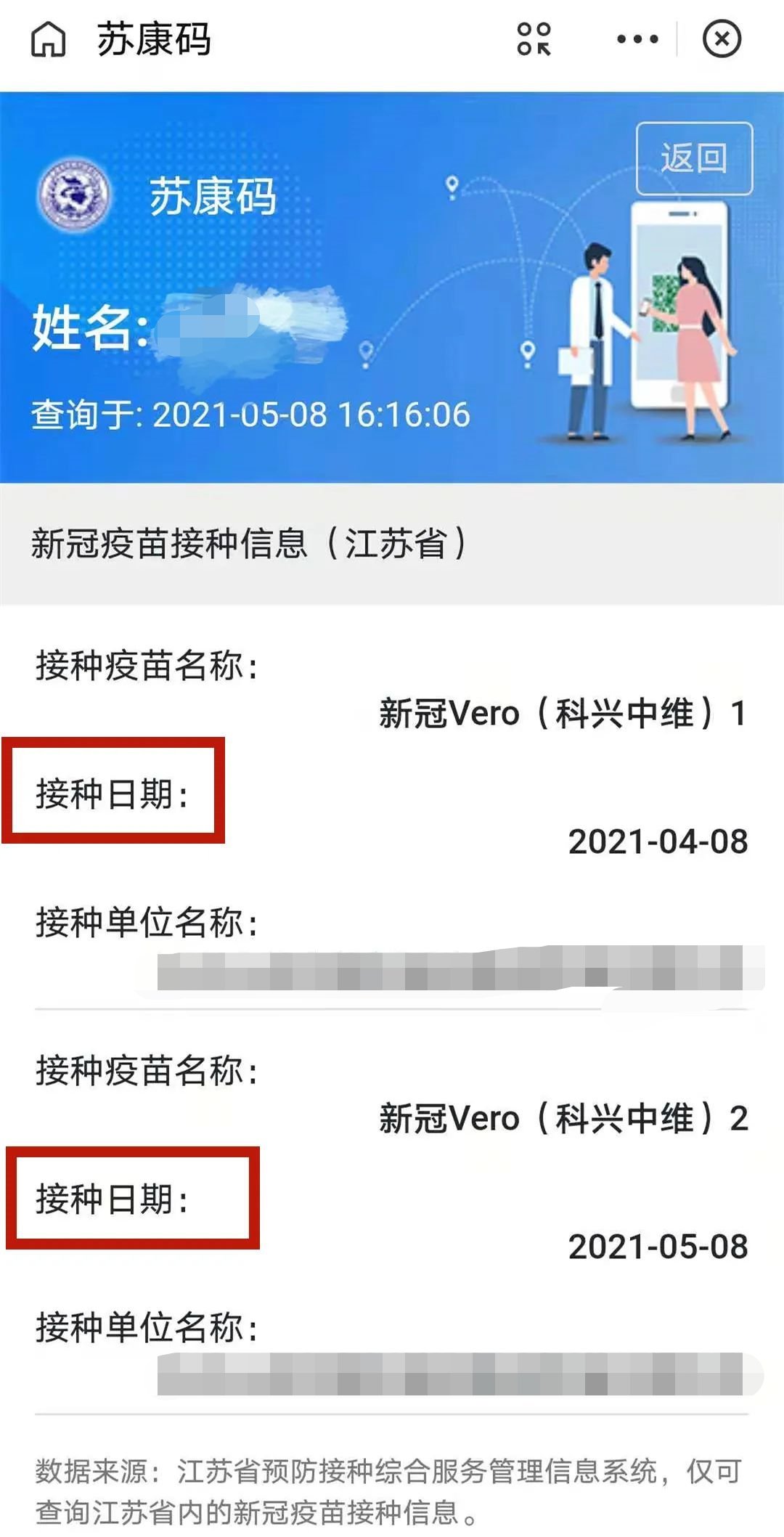 苏康码新冠疫苗接种记录查询内容:接种单位,接种日期,接种疫苗种类,图例: