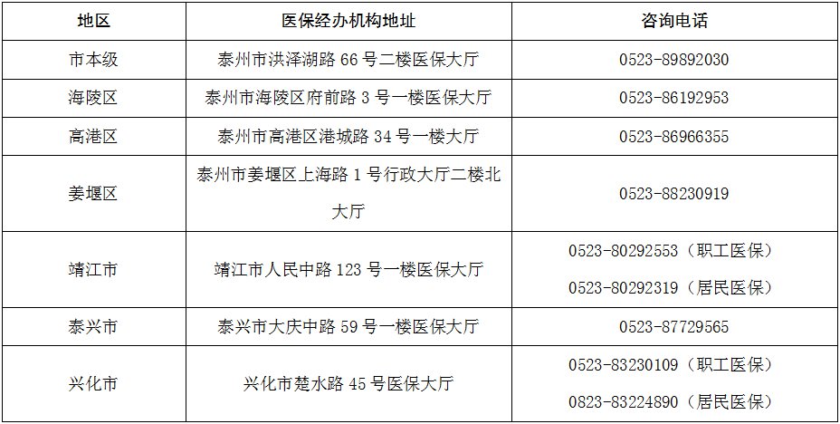 泰州医保报销可以到医保经办机构的窗口办理,具体地址及联系电话如下: