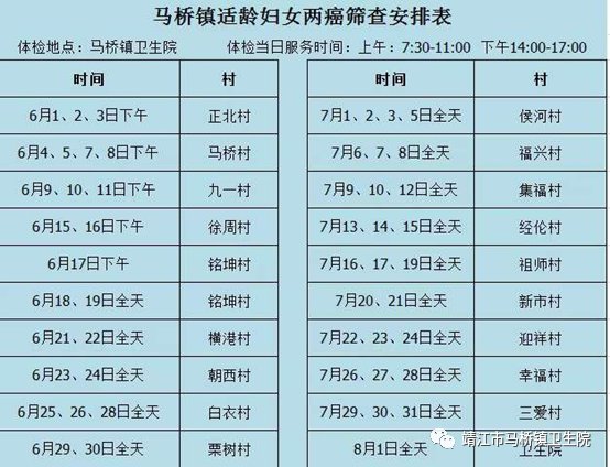 2021靖江市马桥镇卫生院免费两癌筛查什么时候开始