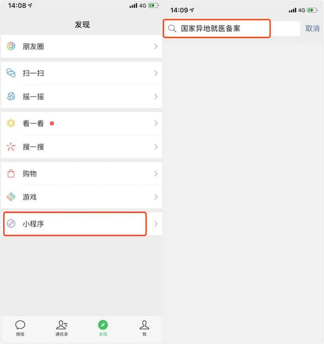 1、在微信内搜索小程序“国家异地就医备案”,或者微信扫描右侧二维码,进入小程序。