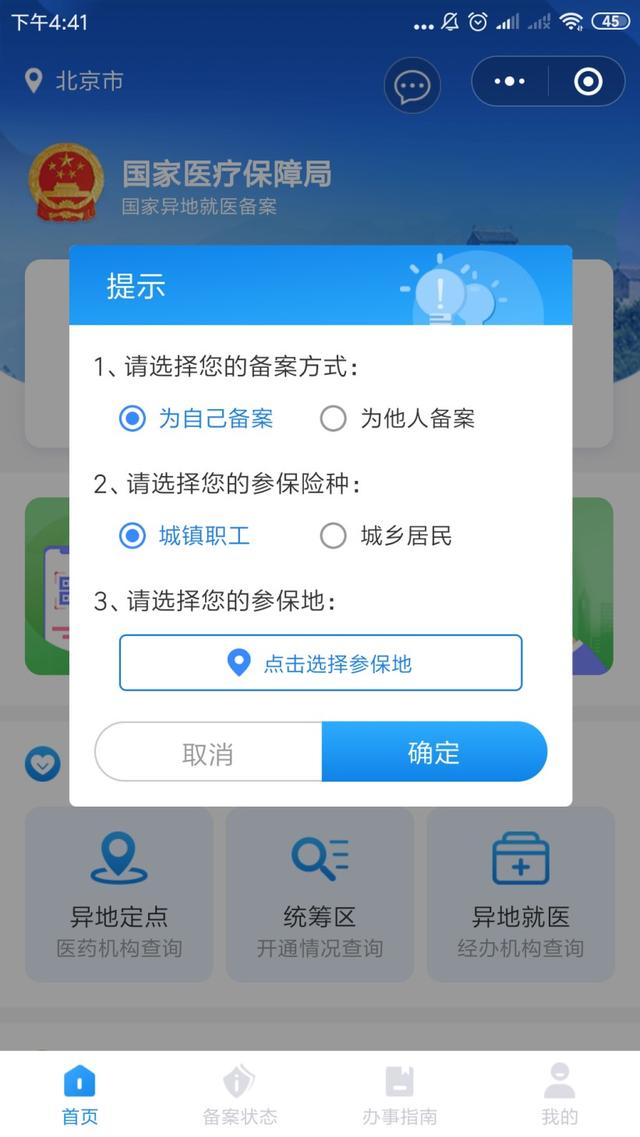 备案方式二:“国家异地就医备案”小程序