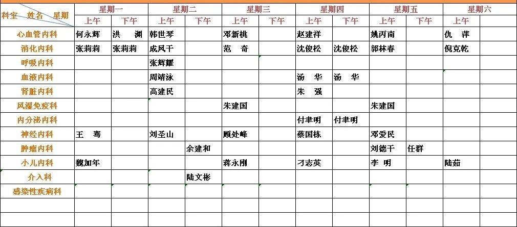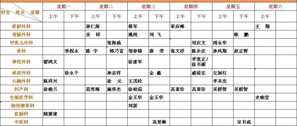 备注:如有变动,以当天实际挂号为准。