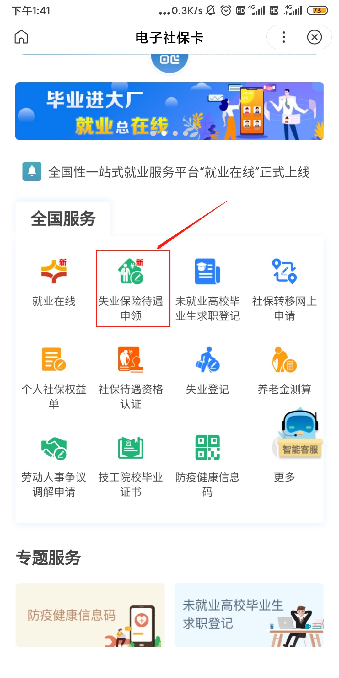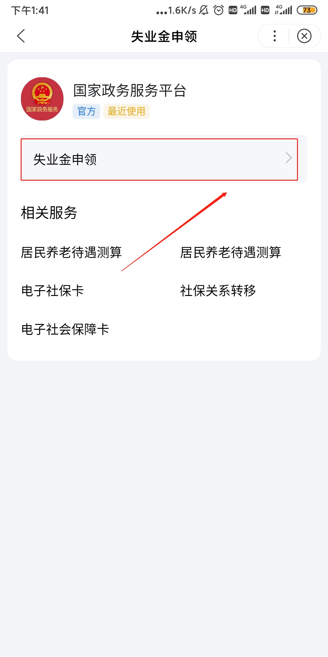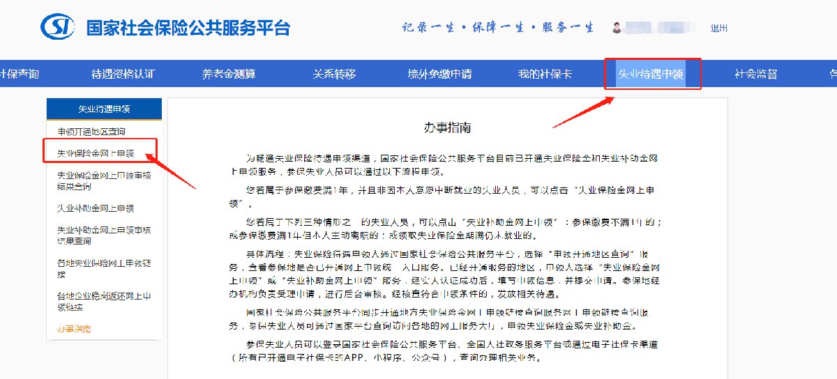 第二步:选择“失业金申领”