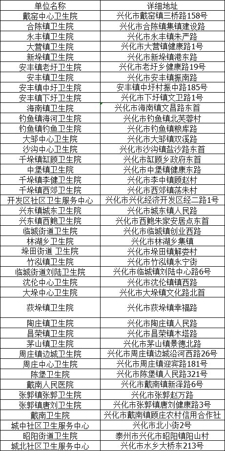 兴化新冠疫苗接种单位地址: